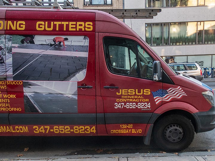 There’s a theme here: from G.O.D. delivery; Jesus, the general contractor; to just arriving in Rome and coming across Christ car wash. Keeping it clean.