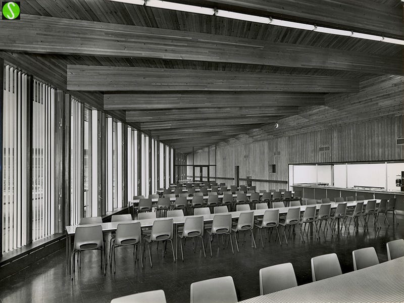 A photo I see every day as it’s in front of my desk. Designed by my dad, it shows the workers’ refectory/canteen at Fawley power station.